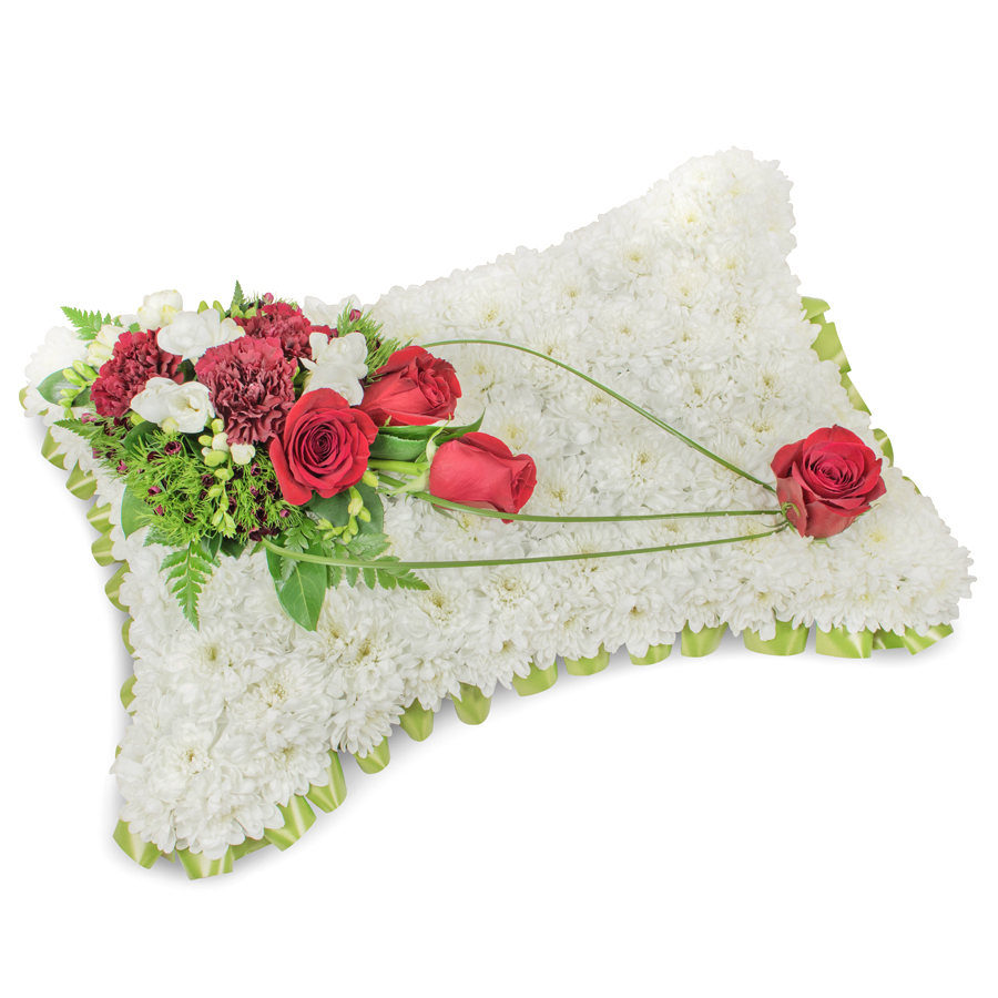 - Calming Colors: A respectful palette of whites and reds that express heartfelt sympathy.